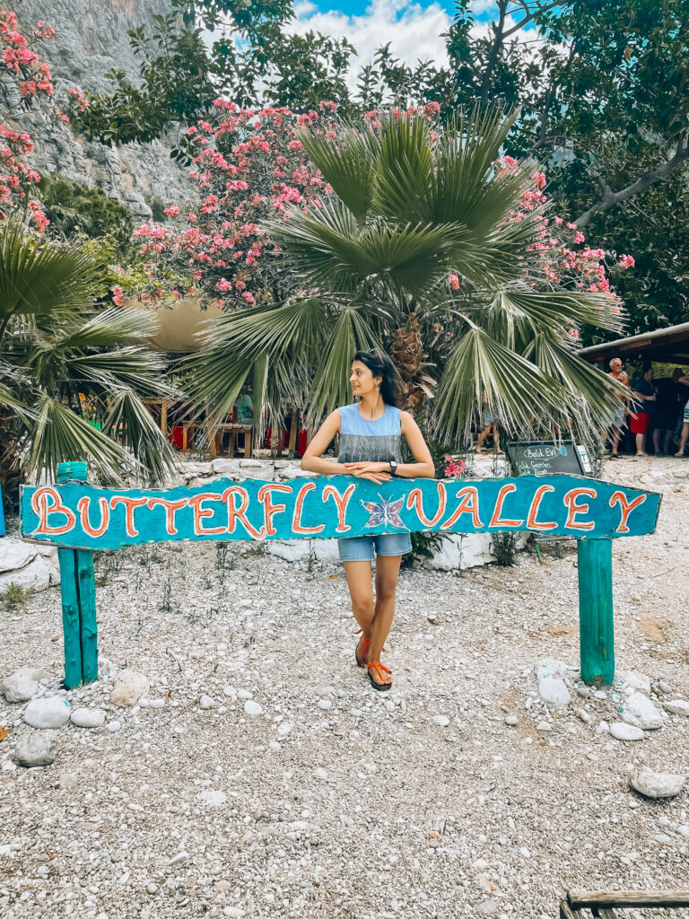 Our first stop was the Butterfly Valley. As the name suggests, this place is known for its butterfly inhabitants, although the increasing popularity has negatively affected the local flora. You can only reach this bay by boat. We had the opportunity to spend an hour here. We decided to hike up to the waterfall and were lucky enough to spot some butterflies along the way.